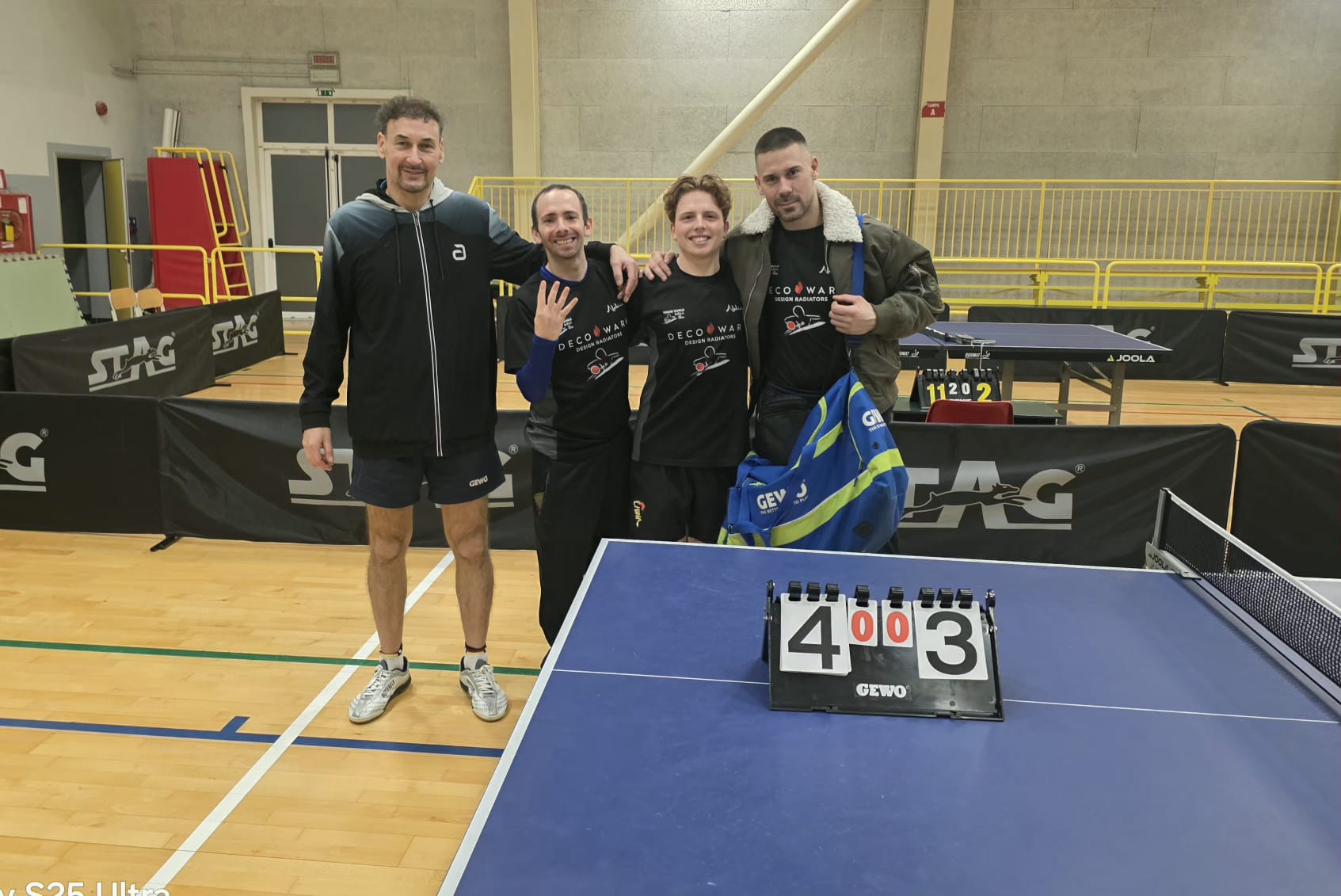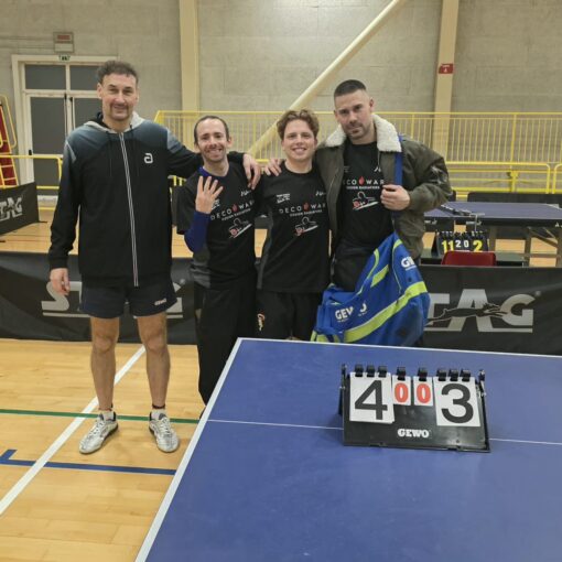 Vittoria alla sprint, non è stata facile, ma alla fine la formazione lughese la spunta 5/4, vittoria che vale il primato.Doppietta di G.Torelli 2/3 cede al quotato Spinedi; L.Righini 1/3 lotta con Spinedi ma cede di misura 3/2. Non sbaglia F.Pollino che liquida con facilità Spinedi e Bacioccola senza cedere un set.