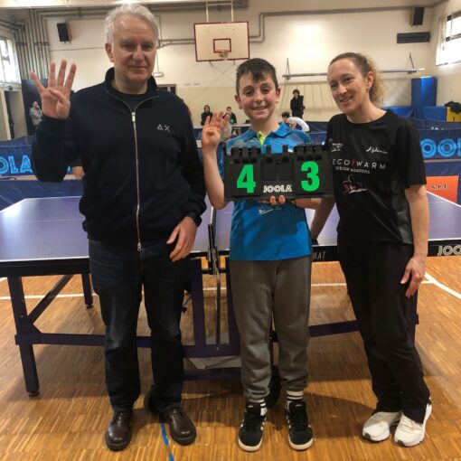 Doppietta di F.Tagliabracci solido nel gioco , 2/2 con doppio 3/1; C. Avveduti 1/2 vince 3//0 perde laseconda di stretta misura 3/2, ottimo l’apporto di G.Laky 2/2 con doppio 3/0, con ottimi attacchi.TT. RIMINI AUTOSC.ADRIATICA 1 – TT. ACLI LUGO JUNIOR RAVENNA 5Disputerà i play off per la promozione in D1 ed è un grande risultato.Il capitano F.Pollino, ennesima doppietta stagionale 2/2 per 3/0, P.Tabanelli 1/2 perde lottando il secondo al quinto set 11/9, bella doppietta per lui, si conferma D.Sbaraglia 2/2 e doppio 3/1.