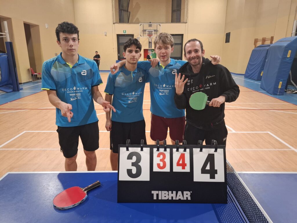 TT. ACLI JUNIOR RAVENNA 4 – DYNAMIS TOP SOLID 3Bel colpo dei giovani ravennati, che crescono di partita in partita.E’ stato un testa a testa fino alla fine. Bella doppietta di D.Sbaraglia , 3/1, 3/0 per la vittoria di squadra, vince il doppio con P.Tabanelli punto a punto per 3/2 prendendo il largo nell’ultimo set; P.Tabanelli a sua volta 1/2,3/0 e terzo punto di squadra, infine D.Ragazzini 0/2 uno perso per 3/2 lottando fino alla fine.Gli JUNIOR sono a centro classifica.