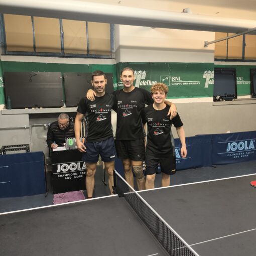 Le bolognesi(Martinelli, Bineeva,Nardiello) si portano sul 3-1, per fortuna Cloe Cerè tiene in gioco la squadra con due su tre, un punto ciascuno di Riccardo Salicetti e Cristiano Cerè e si va sul 4-4, e la tensione è alle stelle. Stessa situazione di otto giorni fa a Rimini persa 5-4 e tocca ancora a Riccardo Salicetti.Il coach Catalin Picu gli dà tutte le dritte possibili e Riccardo Salicetti,11 anni a fine ottobre,sfodera una prestazione di carattere, gioca bene al tavolo attaccando al momento giusto, subisce il ritorno dell’avversaria nel terzo set, il quarto va avanti punto a punto e finisce 12-10 per il giovanissimo promettente lughese. Successo di squadra coi primi due punti e standing ovation per tutti..